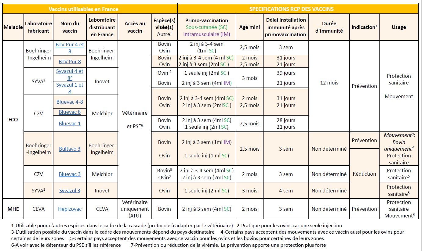 Pour télécharger le tableau de synthèse des vaccins contre la FCO : cliquer ici
