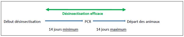 L'animal doit être désinsectisé pendant au moins 14 jours avant la prise de sang. Si le résultat PCR est négatif, il peut venir en zone indemne (dans un délai maximal de 14 jours suivant la prise de sang).
