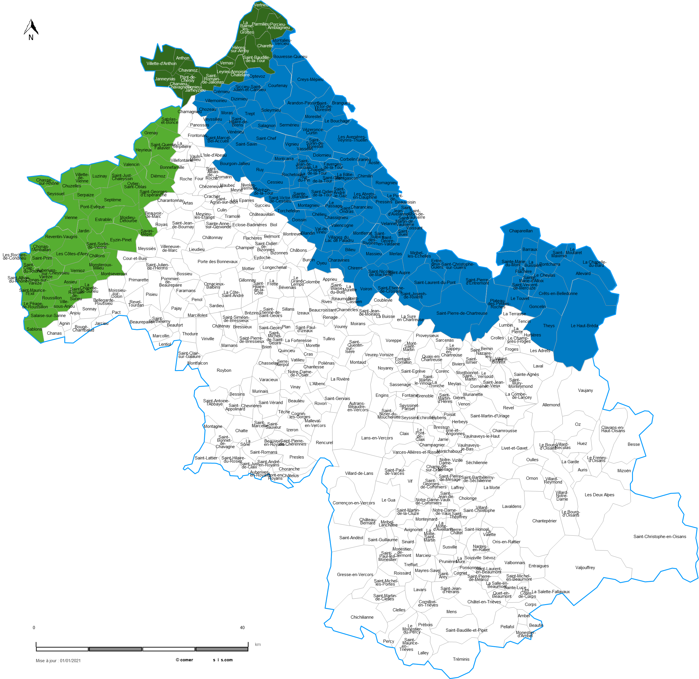 Pour l'Isère, voici le détail des communes en ZV (en bleu) pour l'Isère.