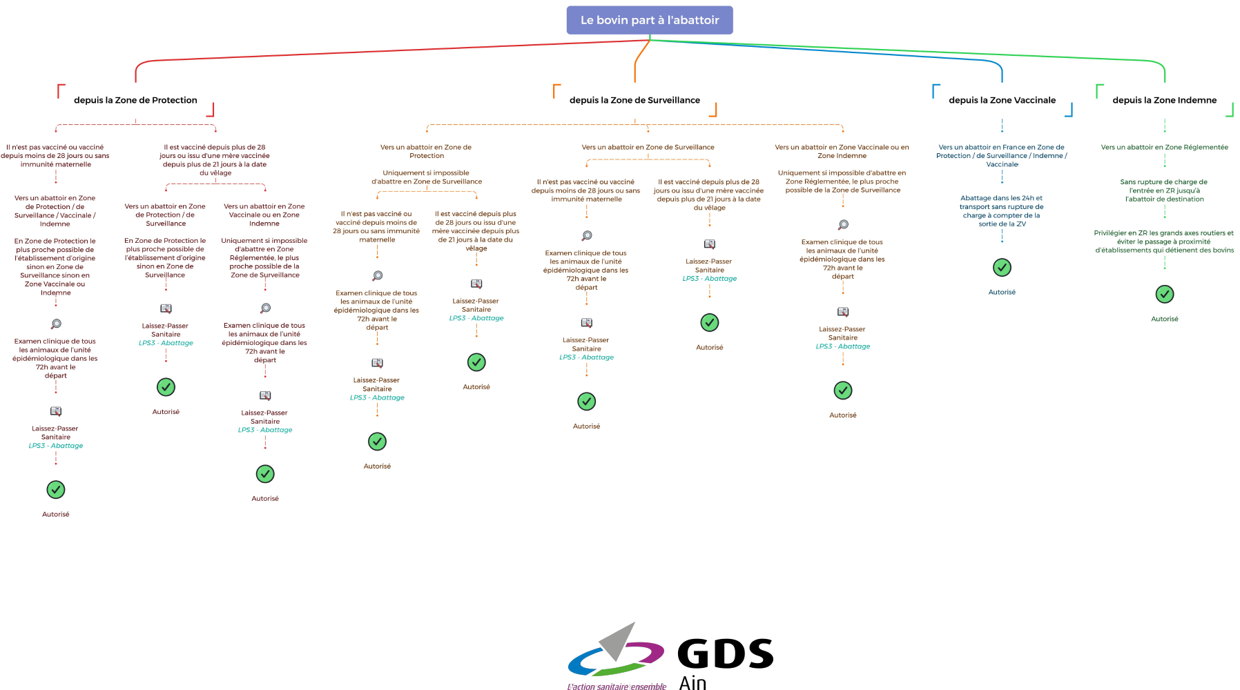 - pour l'abattoir au sein de la ZV 1 : libre circulaiton (pas de Laisser Passer Sanitaire ou de visite vétérinaire)