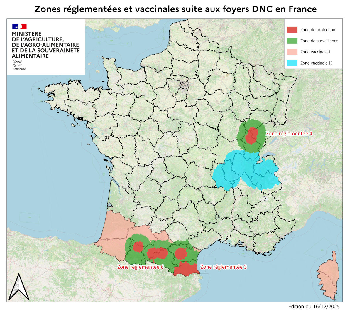 Le seul et unique foyer de la ZR 2 a été détecté le 18 septembre 2025 et les communes de la ZR 2 sont passées en ZV 2 le 05 novembre.