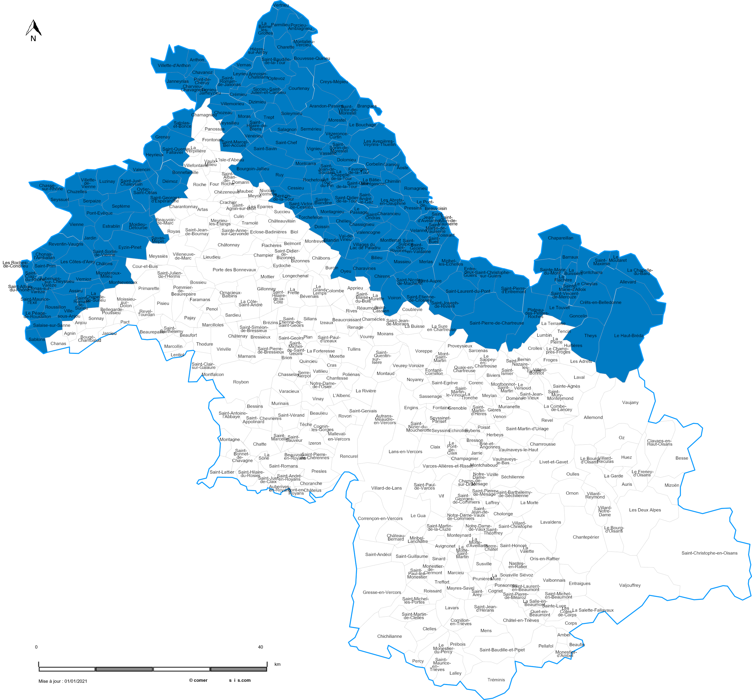 Pour l'Isère, voici le détail des communes en ZV (en bleu) pour l'Isère.