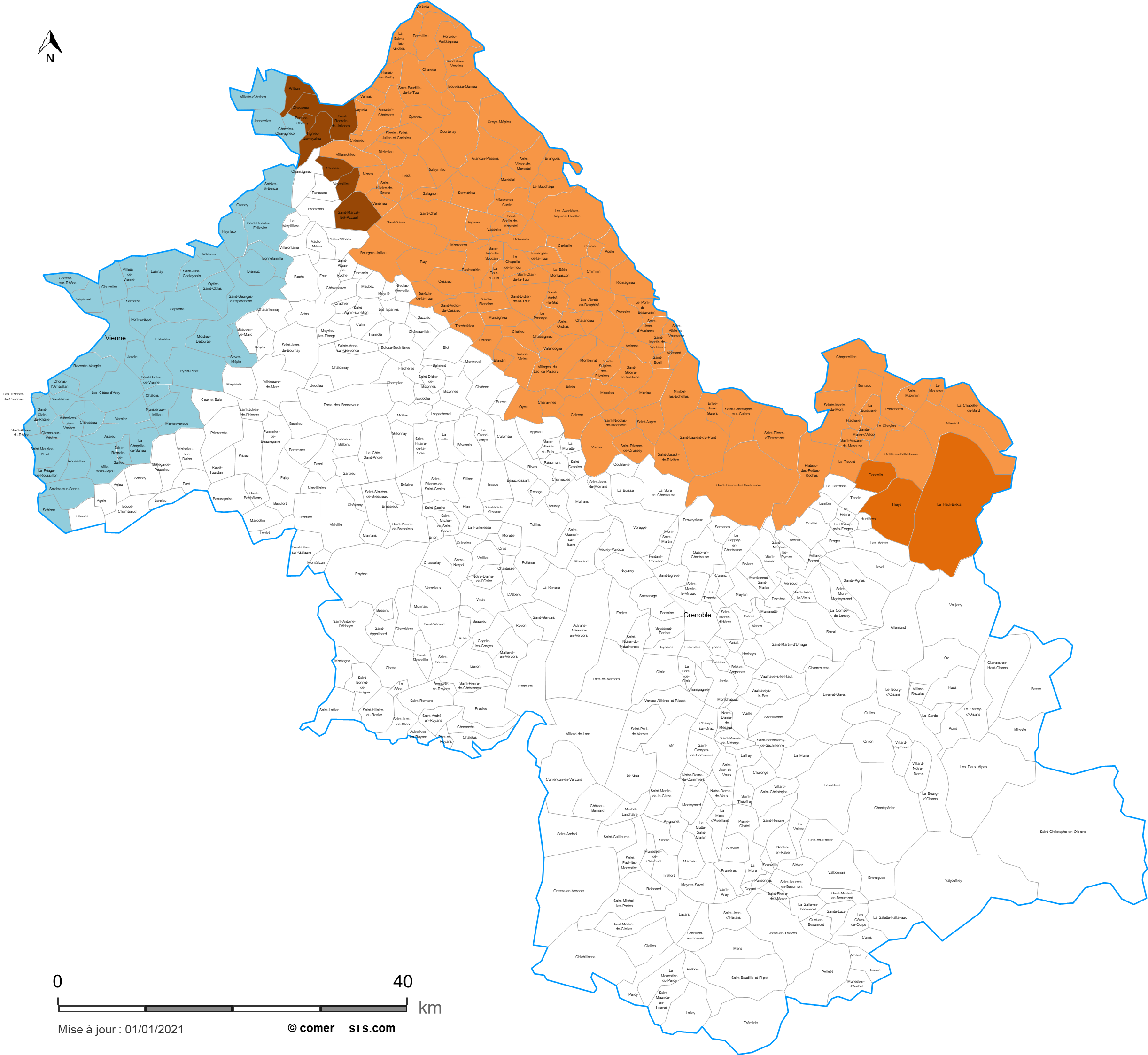 128 + 51 communes iséroises sont dans les zones de surveillance (voir liste ci-dessous)