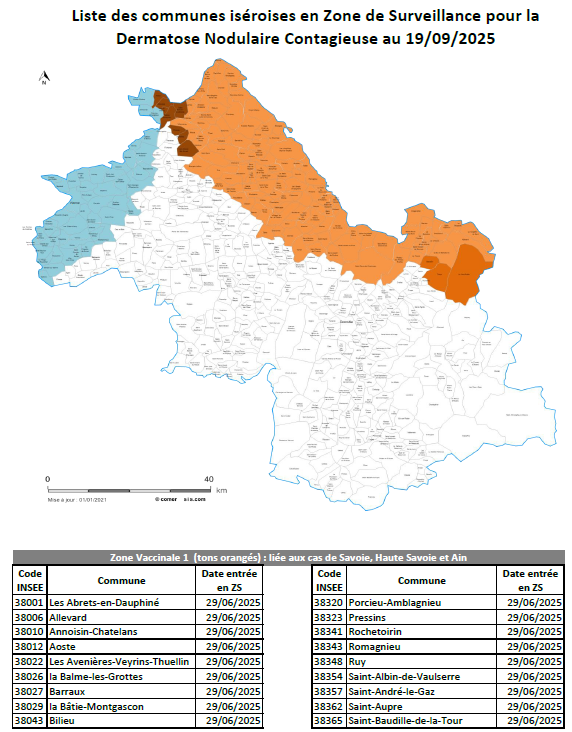 Lien vers liste des communes iséroises en ZR au 30/06/2025 / Lien vers liste des communes iséroises en ZR au 15/07/2025 / Lien vers liste des communes iséroises en ZR au 26/08/2025 / Lien vers liste des communes iséroises au 19/09/2025