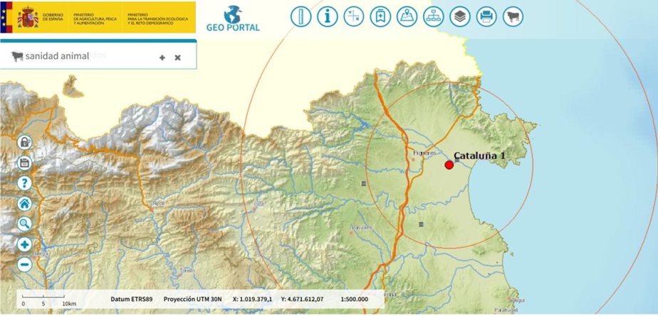 - Zone de surveillance : mouvement possible depuis la zone de surveillance vers la zone de surveillance, avec une visite du vétérinaire sanitaire sur le lot de bovins, dans les 48h avant le mouvement