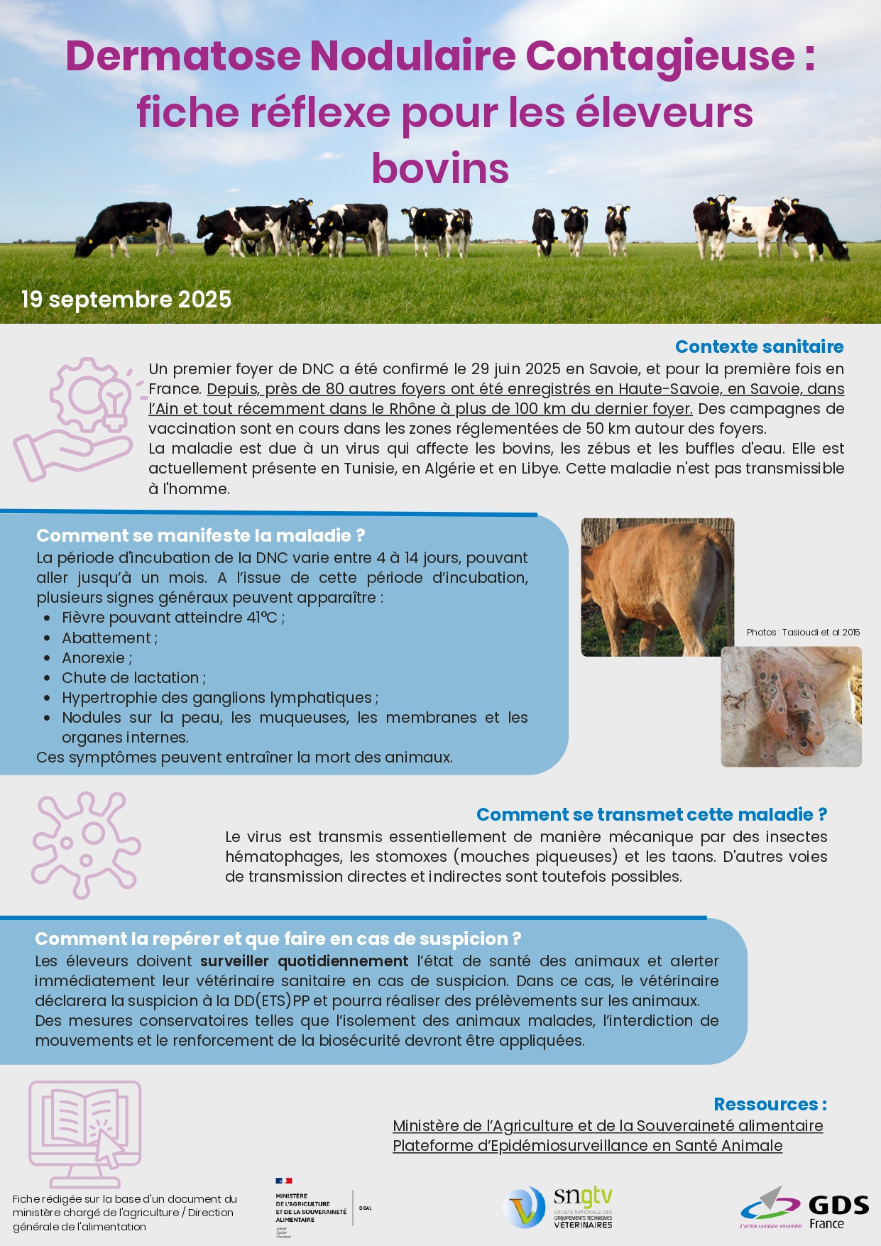 - la page du GDS des Savoie : https://www.frgdsaura.fr/dermatose-nodulaire-contagieuse.html