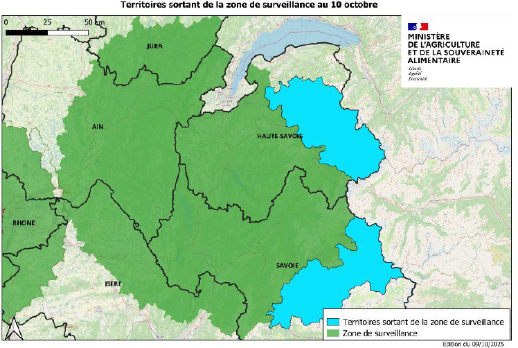 14/10 : 1 nouveau foyer dans l'Ain et 2 nouveaux foyers dans le Jura
