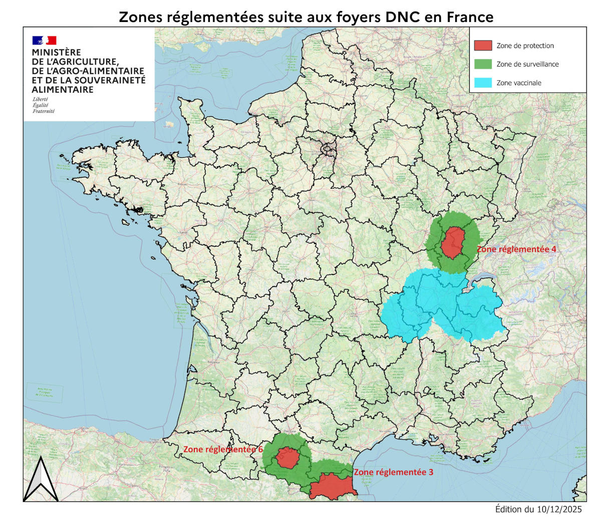 → Un CNOPSAV (Conseil National d’Orientation de la Politique Sanitaire Animale et Végétale) s’est tenu ce matin (17/10) en urgence, suite à l’apparition de nouveaux foyers dans des zones jusque-là indemnes.
