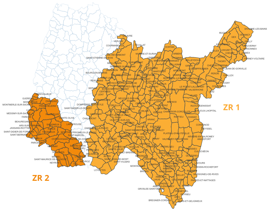 L'Ain est couvert par deux Zones Réglementées distinctes qui couvrent des communes désormais uniquement en Zone de Surveillance :