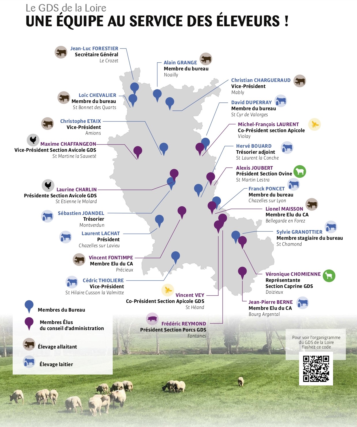 Les sections locales sont réparties sur le département. Chacune a son responsable local qui est avant tout un relais de terrain précieux pour le GDS, notamment dans le cadre d’enquêtes épidémiologique par exemple. Il joue aussi un rôle important dans l’information des éleveurs de son secteur.Le Conseil d’Administration est composé de 16 membres élus (dont les membres du bureau) lors de l’Assemblée Générale annuelle et de membres de droits (représentants des OPA). Les membres du CA votent, approuvent ou refusent toutes les décisions et actions nouvelles au cours des conseils d’administration.