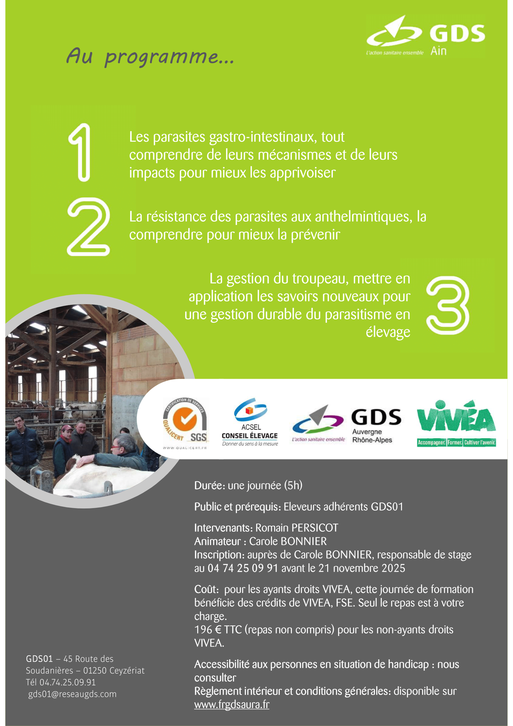 Vous souhaitez gérer le parasitisme de manière raisonnée, nous vous proposons une formation dédiée à la fois théorique et pratique sur Novembre et Decembre dans 4 secteurs du département